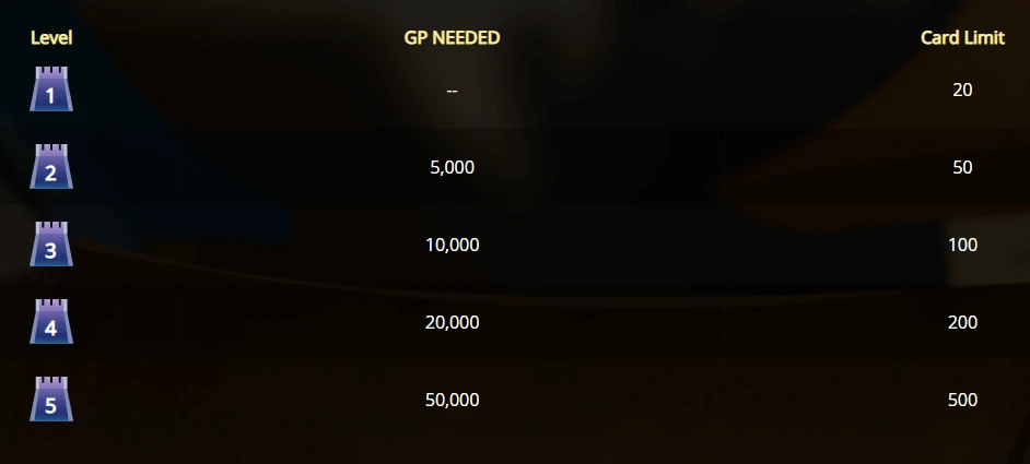 * A new guild building has been added where you can deposit cards for other members of your guild to borrow! This should make it easier for guilds to share cards. All guilds start with a level 1 library building, and it can be upgraded to allow users to deposit more cards.