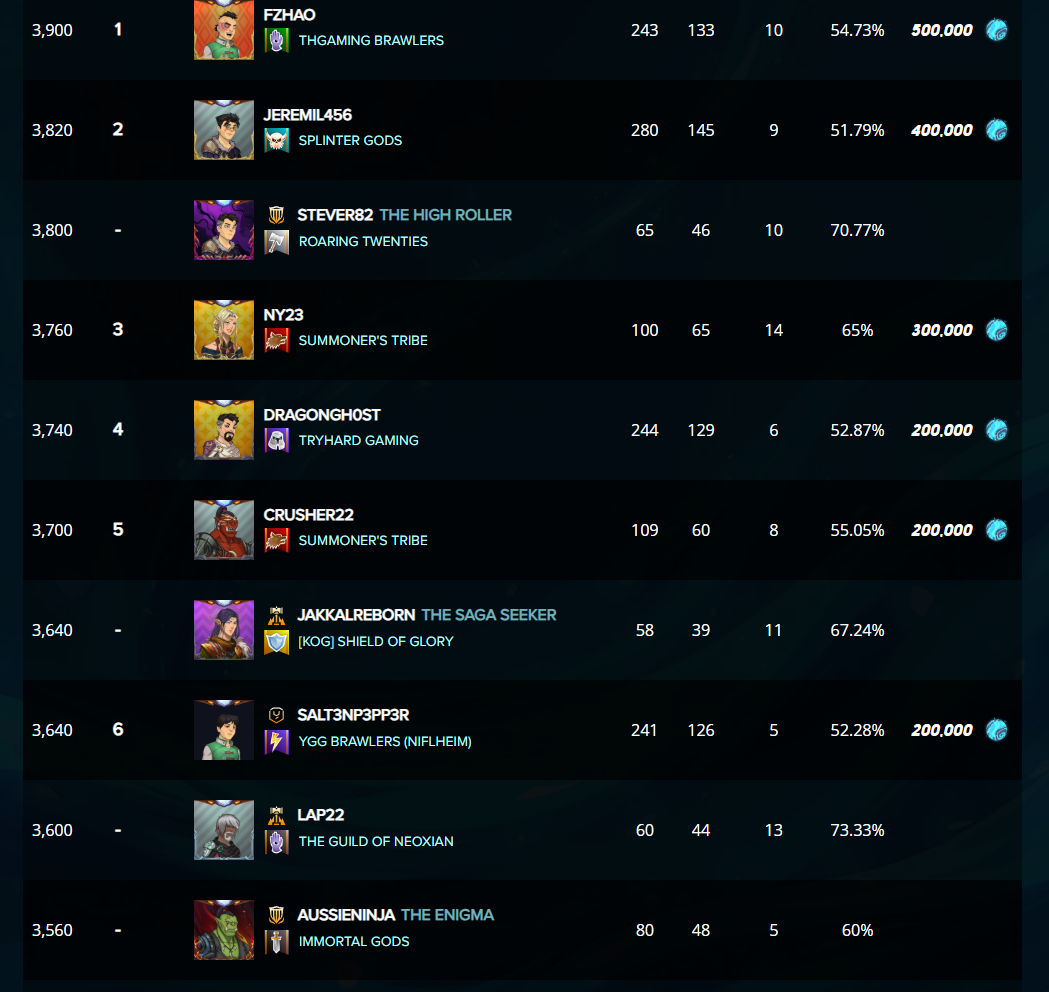 * Additionally a new card will be given out everyone that finished with a 50% win rate at any place on the leaderboard, as well as additional copies to some of the higher leaderboard spots.